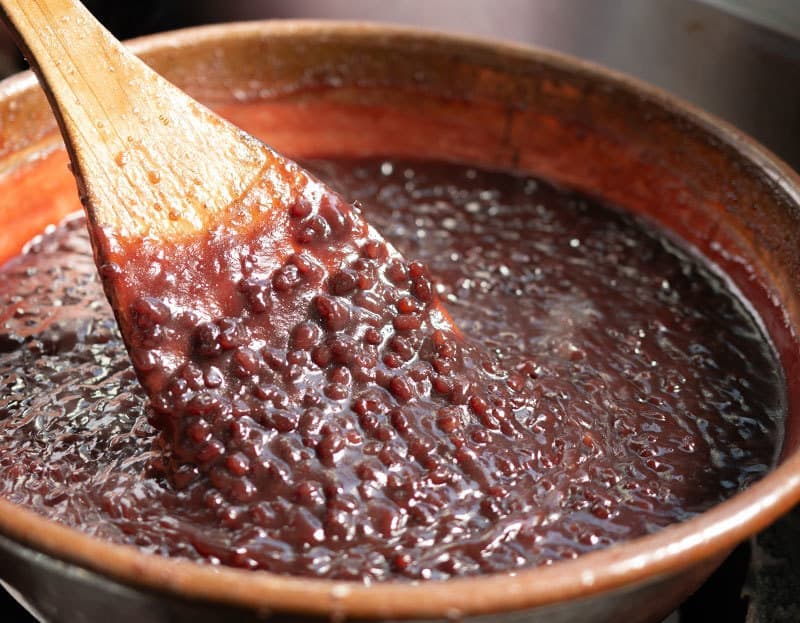 桃乃屋では、当店独自の味を表現するために、商品に合わせた自家製あんを手作りしています。もなかにはもなかの餡、どら焼きにはどら焼きの餡といったように、それぞれの商品に合う餡は、食感や甘さ、風味が異なります。「桃乃屋にしかない味」を、お客様に楽しんで味わっていただけるよう、日々お菓子と向き合いながら、相性の合う餡を作っています。北海道産の小豆を一から研究し、さまざまな試行錯誤を繰り返しながら、素材の味をより引き出せるよう、独自の自家製あんに仕上げています。